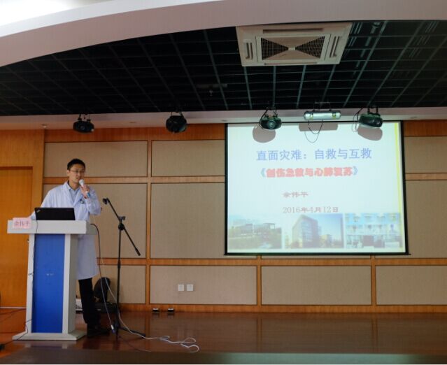 为提高大学生生命意识和互助精神,增强大学生应对突发紧急救护能力,4月12日下午,“直面灾难:自救与互救”讲座在浦东校区文化活动中心3楼多功能厅正式举行。浦东医院团委书记郑文龙、院党委副书记王佳丽参加活动。