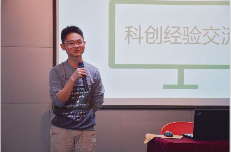科创达人邱依强同学则是讲述了下自己是如何走上科创这条路以及他在不断地学习与进步中受益匪浅。最后,他以比较成功的大学生科创创业为例,阐明了思想的重要性,希望同学们在课余时间可以多做一些头脑风暴之类的活动,训练自己的创新思维。