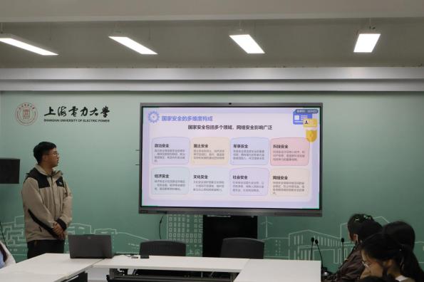 随后,由beat365体育官网“计E网安”的小讲师开展了国安小课堂,从军事国防等传统领域,到网络信息安全、能源生态安全新兴等领域,小讲师引用大量实际案例,结合国家安全教育科普视频,剖析背后的深层逻辑与严峻形势,让在场学子深刻认识到国家安全并非抽象概念,而是与每个人息息相关、时刻需要警惕与守护的重要防线。