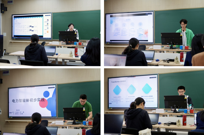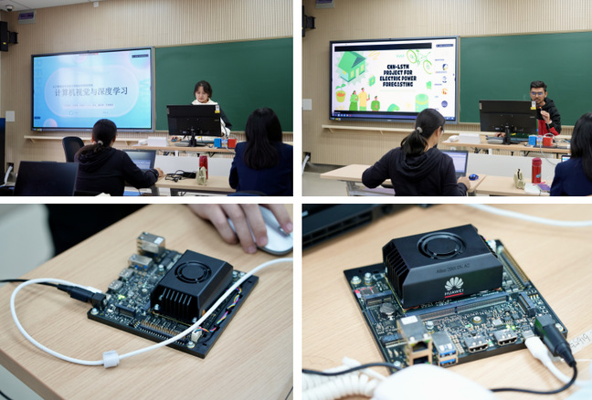 全体同学参加了由上海市人工智能行业协会主办的“2025GDC全球开发者先锋大会”,并听取校内人工智能领域两位专家教授的前沿讲座,开阔了视野,为后续综合实践奠定了理论与行业发展及应用背景知识基础。英伟达深度学习认证课作为深度学习的入门课,以理论加实训实操的形式为学生打开了人工智能实践的大门。实验部分贯彻团队合作学习、个性化学习的理念,以分组分模块的形式开展,其内容包括课程组与希冀平台共研的四个模块自动测评实验,以及与华为公司共建的Atlas200DK开发板实验。在综合实践部分,为激发学生创新意识,进一步培养学生团队协作与工匠精神,引导学生深入探究人工智能技术与能源电力实际场景的结合,在分组分模块实验的基础上,初步设计开发能源电力行业应用实践。同时,多名人工智能方向的研究生助教全程参与实验实践指导。在课程结束时,由班委组织课程展示交流沙龙活动,答辩成绩由各学生团队和教师团队共同打分进行综合评价。