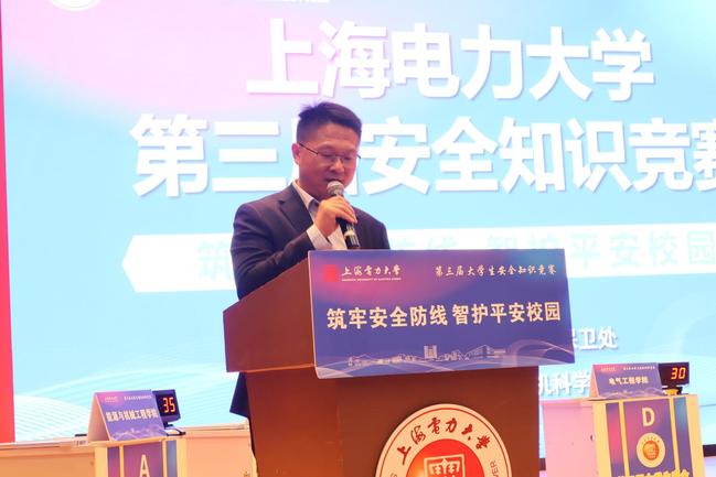 大赛伊始,朱克勇致开幕辞,他首先向莅临的嘉宾表示热烈欢迎,向积极学习、研究、践行安全文化维护校园安全的师生表示诚挚的问候。他表示,安全工作是学校的生命线与底线,关乎师生获得感、幸福感,与学校高质量发展息息相关,我校深入贯彻习近平总书记关于统筹发展与安全工作的重要指示精神,以总体国家安全观为统领,根据上海市安全工作总体要求,我校勇担为党育人、为国育才的初心使命,牢固树立“安全第一、生命至上”的理念,把大学生安全教育工作纳入学校思政工作体系重点推进,构建平安志愿者行动支队、反诈者联盟社团、计E网安网络安全志愿者团队等多种安全教育模式,开展了国家安全教育宣传周、“一站式”学生社区安全教育月等多项系列工作,在校内形成了“筑牢安全防线,智护平安校园”的浓厚安全文化氛围。他回顾了上电学子在安全知识竞赛方面取得的成绩,他希望同学们以此次活动为契机,进一步贯彻总体国家安全观,增强国家安全意识和素养,以新安全理念保障新发展格局,牢牢夯实高校安全发展基础,为建设平安上海、平安中国贡献我们应有的力量。最后,他预祝参赛队伍都能赛出风格和水平,预祝竞赛竞赛取得圆满成功。