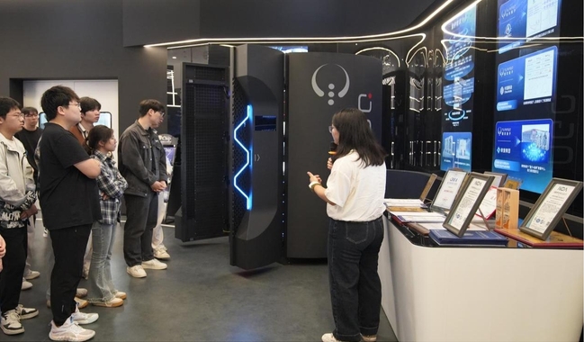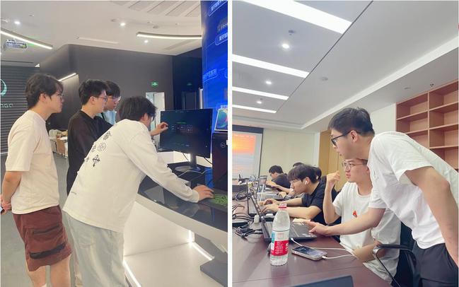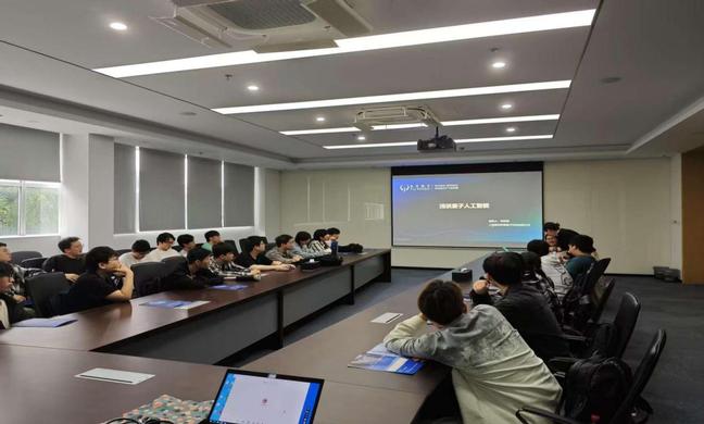 6月23日,实训首日开展图灵量子现场教学。学生们深度参观图灵量子企业,沉浸式感受量子科技企业的研发氛围。在企业展厅,企业老师化身“量子引路人”,带领学生穿梭于量子科技的奇妙世界。目光所及,超晶圆级异质集成光芯片、多芯光纤连接器件等“黑科技”展品有序陈列,企业老师结合展板与实物,详解图灵量子专利技术——如何突破传统光刻设备限制,打造超大晶圆尺寸光芯片,以及这些芯片在量子计算、能源电力场景的应用潜力。来到量子计算设备区,两台印有“图灵量子”标识的黑色机柜尤为醒目,内部精密的光学元件与线路,构建起量子计算的硬件基石。图灵量子教育事业部经理宗延蓉为同学们揭开量子计算神秘面纱:从超导、离子阱到光量子技术路径差异,对比不同技术在可扩展性、相干时间的优劣势,让抽象的量子理论变得触手可及。展厅一侧,巨大的时间轴屏幕闪烁着图灵量子的发展轨迹——从2021年成立到突破多项量子光芯片技术,每一个节点都标注着量子科技的前进脚步。学生们或驻足观看教育产品的互动演示,或围在量子计算模拟器前尝试操作,在“可看、可触、可互动”的体验中,初步构建量子计算知识框架。这场参观,让学生跳出书本理论,触摸到量子科技的产业脉搏,为后续实训筑牢认知根基,也点燃了探索“量子+人工智能”融合创新的热情。