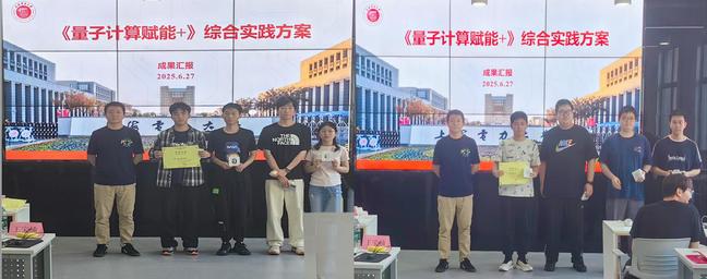 6月27日,实训迎来成果答辩环节,学生们以 “基于量子神经网络对手写数字图片进行分类” 等实践成果,开启最终的学习验收与思维碰撞。答辩现场,学生小组依次登台。面对由企业专家、校内导师组成的评审团,他们从容展示量子神经网络模型构建思路,借助大屏呈现训练数据曲线、分类准确率等成果。从量子比特初始化策略,到量子门操作序列优化,再到模型在手写数字分类任务中的应用效果,学生们详细拆解实践过程,将实训中积累的技术细节与创新思考一一呈现。这场答辩,不仅是实训成果的集中展示,更是学生从 “技术实践者” 向 “创新思考者” 进阶的见证。通过与企业专家的交流,学生们明晰自身在量子计算应用探索中的优势与不足,为后续深入学习、参赛备赛校准方向,也让校企协同培养的成果,在思维交锋中绽放更耀眼的价值,持续赋能量子科技人才成长。最后,企业专家为优秀团队及个人颁发了奖品和证书。