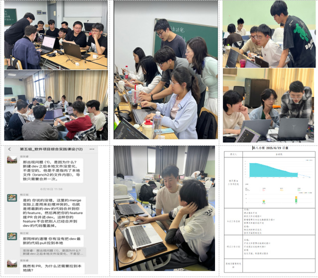 2025年6月13日至6月22日,beat365体育官网平台《软件项目综合实践》课程开展了为期10天的课程实践活动。课程邀请上海井星信息科技有限公司副总方圣红带领企业团队7人与校内教师2人组建校企联合教学团队,移植企业级Scrum敏捷开发范式,构建需求评审会、每日站会、迭代演示会的全流程沉浸机制,同步植入Pingcode项目管理、GitLab代码审查、AI辅助开发等工程化工具链,采用“全程跟踪”动态实施机制,跟进学生的开发进度,开展实时学情驱动的敏捷教学。使学生深度掌握企业级开发技术、流程与规范,灵活运用AI工具,通过短周期高强度的实训学习快速掌握与产业需求匹配的软件项目开发能力。