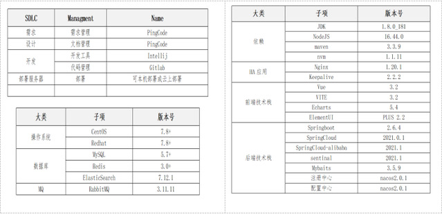 本次课程实践技术选型首选符合产业需求图谱的技术栈,所用的开发框架、技术和工具均为当下众多企业广泛使用,包括选用Scrum敏捷开发框架,运用DevOps CICD流程和微服务技术实现目标系统,实践用到的技术栈如图所示。