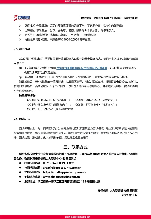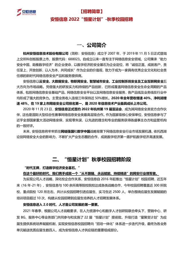 【招聘信息】252-202111安恒信息2022秋季校园招聘