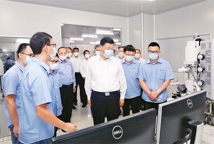 2020年10月12日至13日,中共中央总书记、国家主席、中央军委主席习近平在广东考察。这是12日下午,习近平在潮州市潮州三环(集团)股份有限公司实验室,了解企业自主创新和产业升级等情况。 新华社记者 王晔/摄