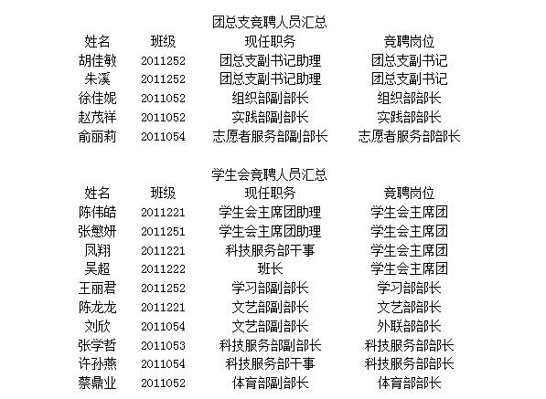 2013年beat365体育官网平台团总支学生会竞聘名单公示