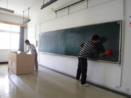 5月13日下午,beat365体育官网“菁菁家园”项目组同学对北校区教学楼的黑板和讲桌进行擦洗,这是继“节能关灯”和“清洁校园白色垃圾”后的又一项感恩回馈学校的活动。同学们希望尽自己的一份力为我校师生营造一个良好的教学和学习环境,为校园增添了一抹亮丽的色彩。