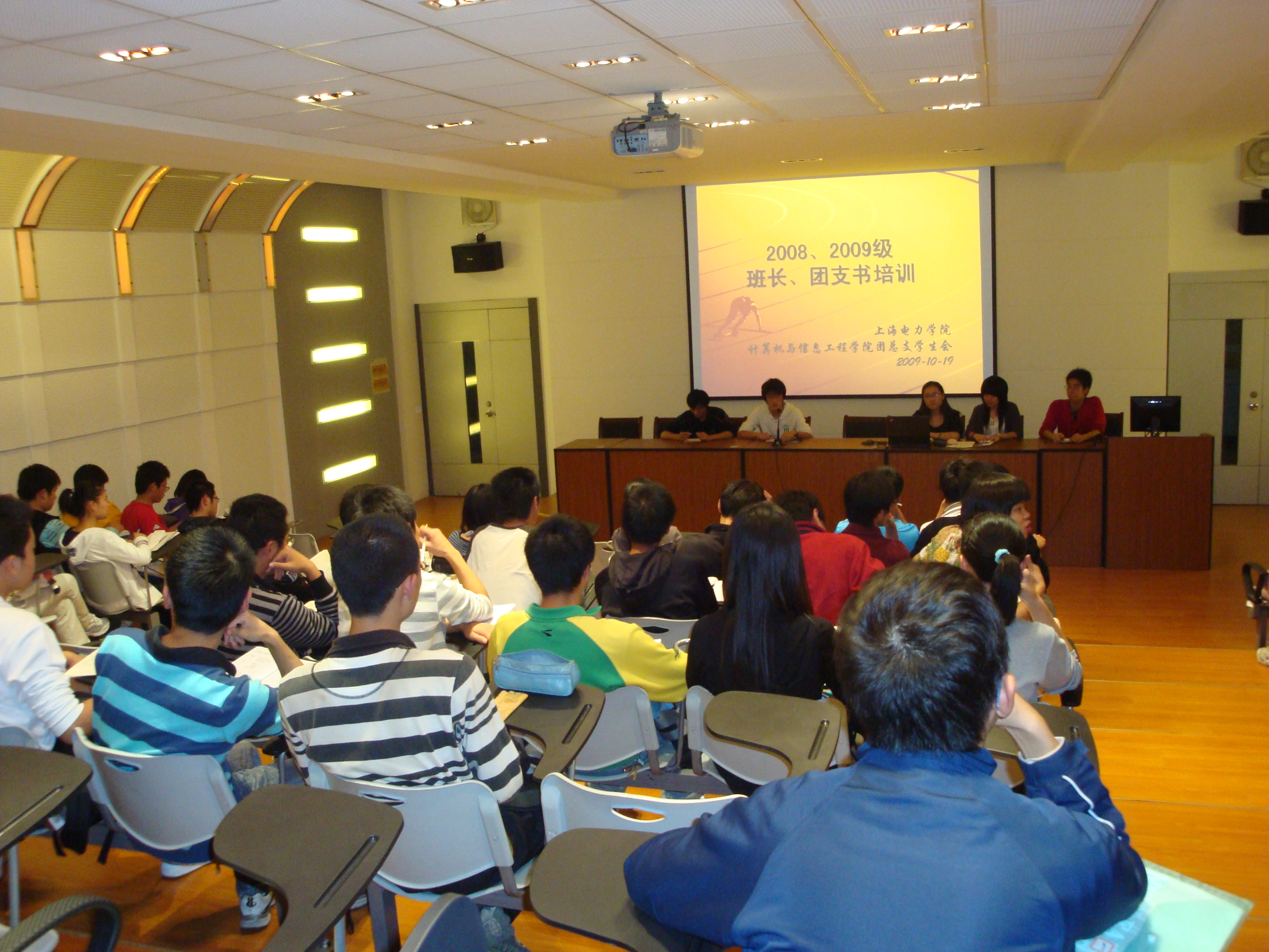 2009年10月20日晚,计信学院在知行楼308召开2008、09级班长和团支书培训会。团总支书记成勇老师以及团学主要学生干部参加了此次会议。