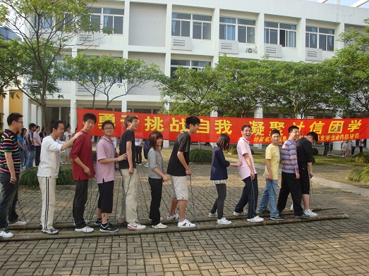 本次团训为期3天,22日与24日的游戏分别有盲人绳房、同舟共济、同心协力等团队游戏,世博志愿者和学生干部不仅加深了彼此之间的了解,更充分理解了团队精神的精髓所在,31日开展的训练通过“运筹帷幄共建高楼”和“欢乐多米诺”两个协作让与会同学们再一次体验了团队协作、沟通的重要性和团队精神在工作中的的作用。同学们也纷纷表示在有趣的游戏中找到了自己在团队中的位置,既交了朋友,也体验到了同其他同学一起完成工作的成就感。成勇老师在活动结束的总结讲话中也指出:“在团队工作中寻找快乐。”他表示:希望同学能在团队协作中找到自己的收获,多与同学互相沟通、交流看法,集思广益为计信团学的工作更上一层楼做出努力。