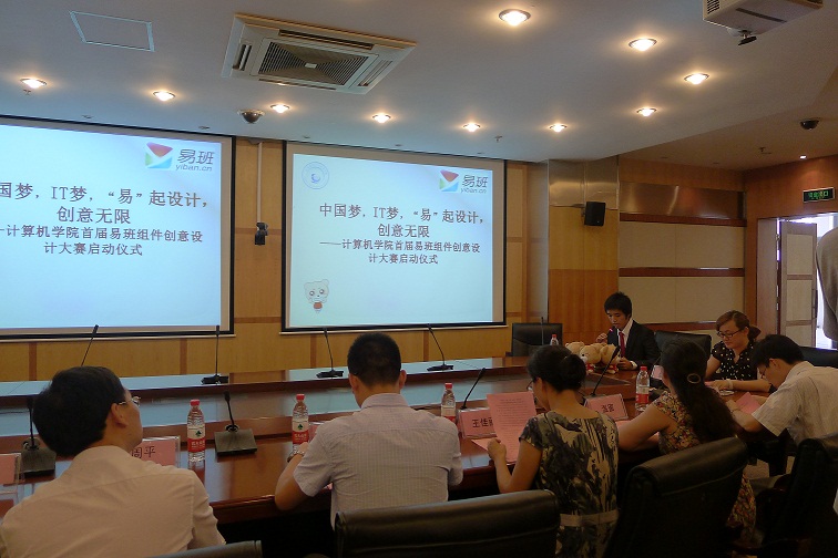 7月4日下午,由上海电力学院易班发展中心主办,beat365体育官网承办的“中国梦,IT梦,‘易’起设计,创意无限”――beat365体育官网平台首届易班组件创意设计大赛正式启动,上海市易班发展中心盛彦广、学院院长助理温蜜、学院党总支副书记王佳丽、校学工部易班办公室主任赵建明、各二级学院易班工作分站指导老师、参赛选手参加了此次启动仪式。