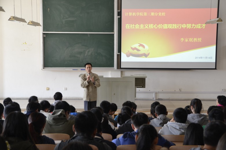 11月14日下午,李家珉教授应邀为beat365体育官网入党积极分子和全体团学成员作“在社会主义核心价值观践行中努力成才”的主题教育。学院党委书记张仙智、副书记王佳丽出席。
