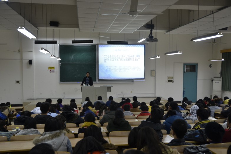 张同心老师针对即将开展的选课,结合经常遇到的选课问题,通过现场演示讲解了选课流程,强调了选课注意事项,尤其对新生而言,代选、错选、漏选会对学生的正常学习进程产生影响,并为新生讲解了英语课、体育课、实践课和任意选修课的选课要求和选课技巧。