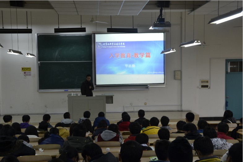 主管教学的学院副院长毕忠勤老师从绩点计算、学籍处理、诚信考试和学位授予四个方面对新生开展了学风管理教育。毕老师结合生动现实的例子,希望新生以学业为重,重视基础课程和专业课程学习,注意学习方法、注重交流互助,争做一名品行端正、成绩优良的合格大学生。