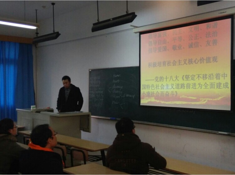 12月25日下午,信息安全专业2014253班于北1219展开了以“社会主义核心价值观”为主题的特色团日活动,班主任孙超超老师、辅导员赵铮老师参加。