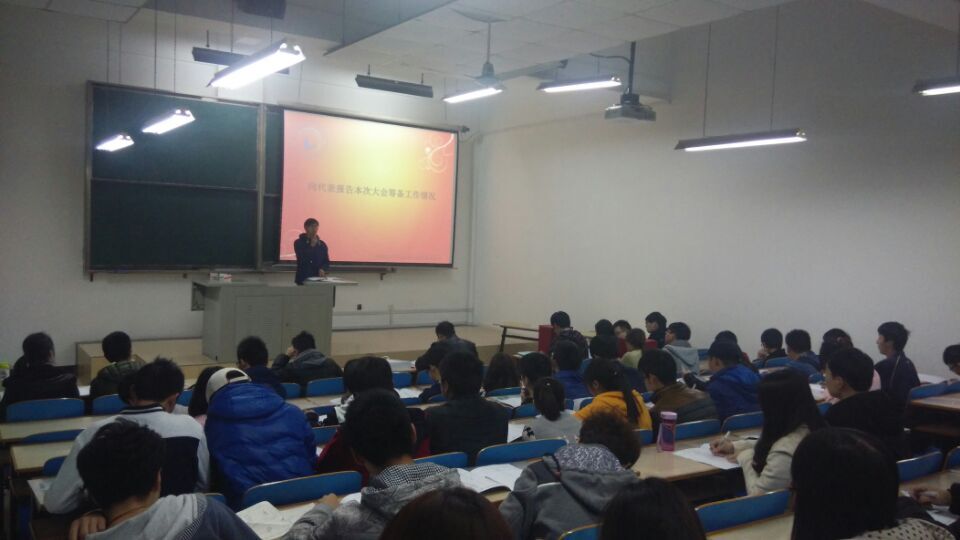 4月14日晚八点十五分,beat365体育官网第一次团学代表大会预备会议于北2103A顺利召开,beat365体育官网团委书记赵铮老师和与会的76名代表一起参加会议。