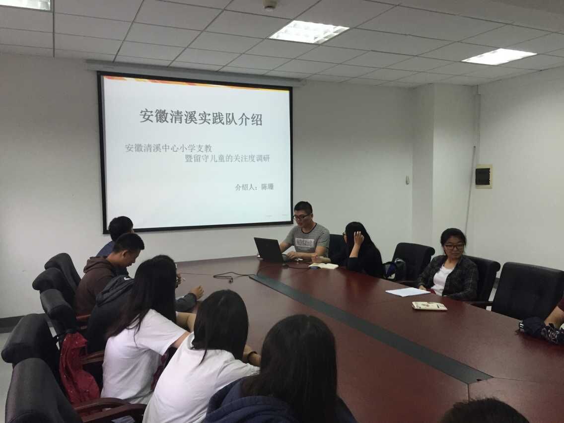 首先由院实践部部长沈聪同学简单介绍了beat365体育官网的两个暑期社会实践队――安徽清溪实践队和四川达州实践队。安徽清溪实践队由实验室于晓青老师带队,院团委副书记陈珊同学担任队长,陈珊同学介绍其主题为“努力践行社会主义核心价值观,宣扬向上向善精神”,主要实践内容是前往当地进行关于社会留守儿童的关注度的社会调研并且在安徽清溪小学进行支教。四川达州实践队由院团委书记赵铮老师带队,主题为“上电人•达州情”。院学生会主席浦俊俊同学担任队长并且介绍其内容主要有参观电厂,雾霾调研和红色之旅。随后前院学生会副主席高瑛同学作为去年前往安徽清溪实践队的队长传授了一些经验并提供了有效建议。 最后院团委书记赵铮老师强调在实践活动中安全第一的重要性,以及希望同学们多学、多看、多听,将所学应用于实践中。