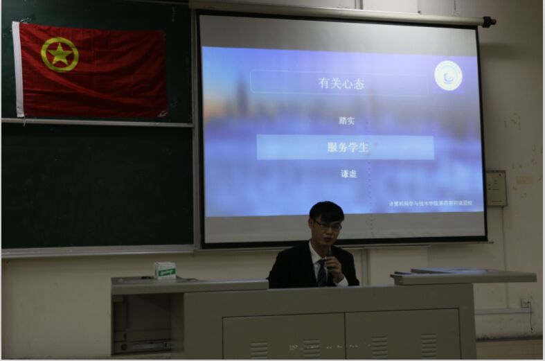 主席团助理刘圣地同学宣读了关于考勤制度及纪律管理办法,其中增加了几条新改进的考核办法。团学办公室主任马思琦同学介绍了其部门的工作职能及特色项目,如生日祝福、便民短信等。学习部部长赵婷介绍了学习部的工作并发表了她对学生工作的想法,并以生活中的小事例来告诉新干事,对待学生工作要认真负责,珍惜自己的选择,不要中途放弃。分团委副书记秦晋同学介绍了团委和团学相关的活动。院学生会主席浦俊俊同学从责任、心态、学业、时间观念四个方面,以学长的角度给新干事们介绍他在团学里工作的经验。最后,院团委书记赵铮老师以朋友的口吻分享了自己的生活往事和感触,告诉大家要从感恩中担当责任、勇于成长。