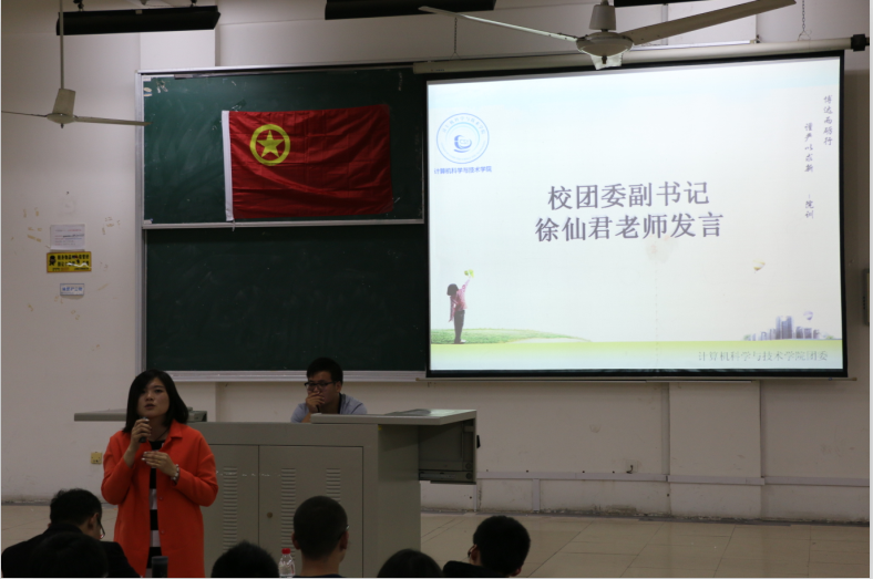 校团委副书记徐仙君在开场发言中向在座的团校成员提出三个希望:希望团学能整合资源向前发展;希望团学成员能够成为志存高远、有理想、有抱负的青年;希望所有人珍惜学习机会,总结经验,提升自己的能力。最后徐老师用一句意味深远的话作为结束语:忠于现实,投资未来 。