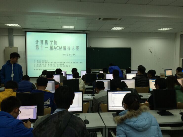 11月25日晚18点,beat365体育官网第十一届ACM编程大赛在奋进楼四楼五机房举行。作为学院特色活动,历经十届历史,ACM编程大赛总结经验,力求办得更好。本届ACM编程大赛共有25个小组96名同学参加。为促进各年级同学的交流,也为大一同学更快地融入编程领域,我们实行了“老鸟带新鸟”的策略,要求本次比赛需要3~4人组队,并且每个队伍中高年级同学不得超过2人,也就是说,每个队伍中必须存在大一同学。同时,为了让大一同学能在团队中作出贡献,而不是面对编程题束手无策,我们在赛前一周为大一同学提供赛前辅导,以比赛类型相关的编程题作为辅导题进行短期训练,力求在比赛时取得好成绩。