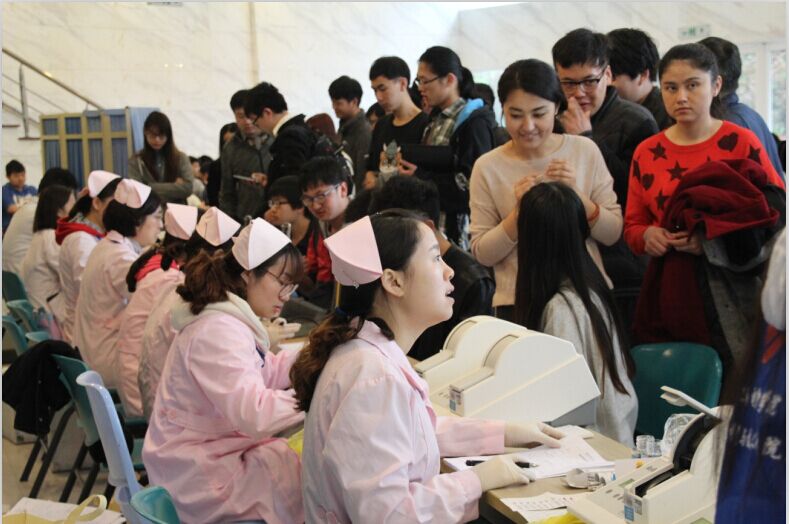 志愿者们一大早来到指定地点做好准备工作,协调配合医生开展献血活动。“有什么不适的话要赶快去医务室,不要逞强”,志愿者在现场叮嘱前来献血的同学。献血的同学按计划来到献血地点,在与工作人员协调之后,同学们按顺序进行了领表登记、血型测定、体检和抽血程序。第三次前来献血的大三同学提醒大家道“早上要吃饭,之后一定要注意休息”。组织这次活动的校医务室肖南老师肯定了beat365体育官网积极踊跃的态度,指出beat365体育官网平台每年重视献血活动,不论组织、协调都准备的很到位,也因此能圆满、超额的完成指标。在场的老师也说“通过这次活动,给大家提供了许多献爱心的机会,传递了青春正能量,践行了雷锋无私精神,更是弘扬了中国青年的无私精神。”献血后,院领导、老师们关心慰问了同学们的身体状况。