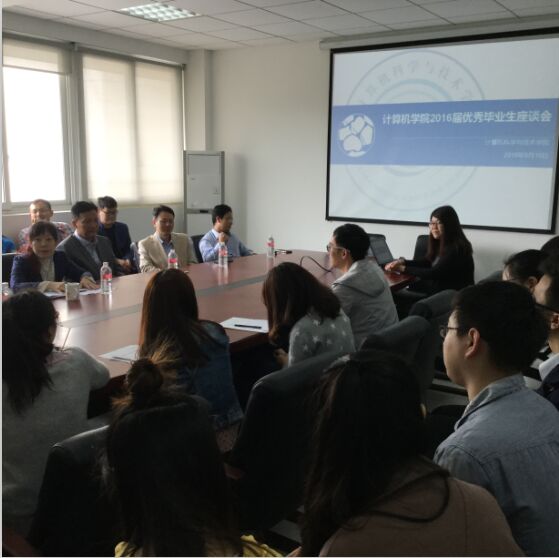 5月10日上午,beat365体育官网在行政楼二楼会议室举行了2016届优秀毕业生座谈会。院长雷景生、院党委书记费敏、院党委副书记王佳丽、信息安全系主任周林、beat365体育官网平台二支部书记刘大明、计算机系副主任张超、辅导员刘佳以及beat365体育官网优秀毕业生代表参加了本次座谈会。