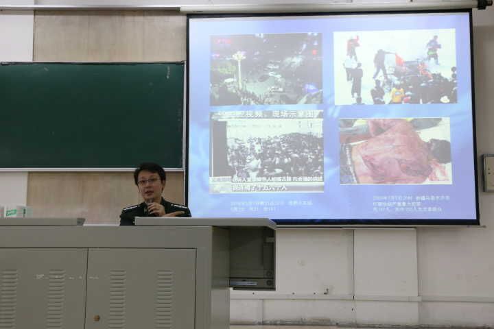 金炜老师从三个方面做了征兵动员。首先他为大家讲解了当前国内外的安全局势,说明了大学生入伍的必要性。随后介绍了今年我校的征兵安排和征兵条件和征兵名额。最后他分别介绍了国家、上海市和我校的优待政策,并且用自己的亲身经历鼓励大家积极报名参军入伍。之后,由优秀退伍兵代表乐汉同学上台讲解了部队的生活。他从战友、信念、体魄和规矩方面告诉大家如何成为一名优秀的士兵。