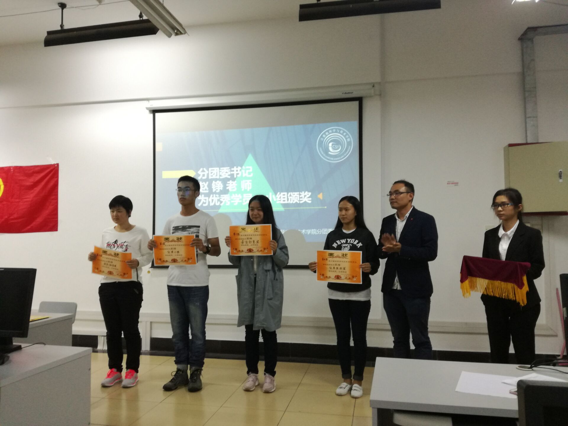10月27日晚上7点,beat365体育官网第五期初级团校新干事培训暨表彰大会在奋进楼201教室举行。院分团委书记赵铮老师和团学干部们一同参与了此次活动。