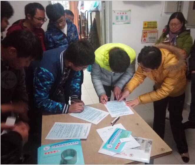活动中,王佳丽老师将寝室安全承诺书赠与103厅厅长董剑涛,并亲自为粘贴承诺书,她讲到寝室是同学朝夕生活的地方,其安全性非常重要,她提醒大家一定要多注意寝室存在的安全隐患,并及时清除。随后董剑涛认为此次活动开展很有必要,他也谈到了自己关于寝室安全性的认识,并愿意在以后的生活中带领1大家积极做好安全隐患的防范,在学院起到宣传带头作用。