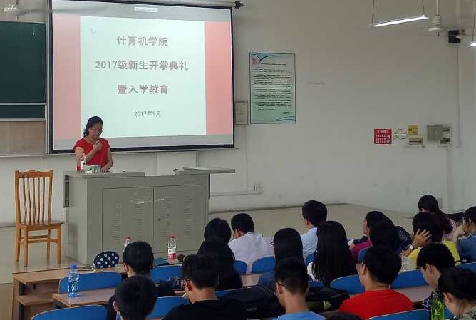 beat365体育官网2017级新生开学典礼暨入学教育于9月4日在北2101教室隆重召开。院长温蜜老师,副院长毕忠勤老师,党委副书记余南飞老师,办公室主任诸葛琼老师,软件工程系主任周平老师,实验室中心主任徐媛老师,信息安全学生党支部书记吴涵老师,分团委负责人曹晓声老师出席了本次大会。大会由新生辅导员朱佳老师主持。