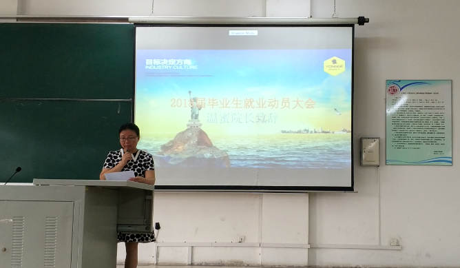 会议分为毕业生就业动员大会和首日教育两项议程。首先由温院长致辞。温蜜老师要求大家在选择就业时,不要过于看重薪资,而重点要看从这份工作能够学到什么,对日后的职业生涯发展起到什么样的作用。