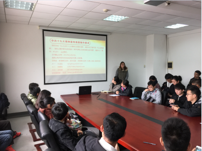 2017年11月20日中午12时,上海电力学院beat365体育官网平台中共十九大精神宣传海报制作大赛开幕。此次开幕式于beat365体育官网平台行政楼二楼会议室召开,beat365体育官网平台分党委副书记余南飞、辅导员刘佳及beat365体育官网平台大一至大三班长、团支书参加本次开幕式。