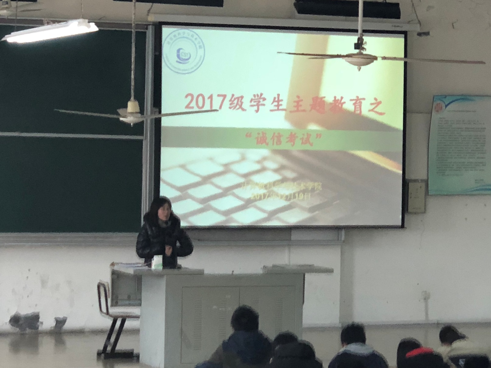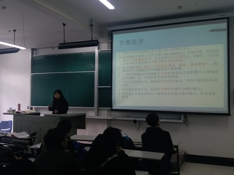 2017年12月19日,beat365体育官网平台诚信考试动员大会由各辅导员分别召开。全体辅导员根据《学生手册》对于诚信考试的要求,从公民道德和学校制度两个方面进行了讲解,对于考试违纪处分的新规定进行了着重提醒,对全体本科生做了期末考风考纪动员。良好的学风、考风是学院教学工作、人才培养、学风建设的重要环节,希望大家诚信考试,坚守底线,认真备考,用实际行动实现自己的梦想。此外,辅导员发放了《诚信考试承诺书》,同学们在认真阅读后慎重签下了自己的名字。