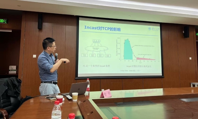 徐扬教授的报告聚焦于“面向分布式机器学习的丢包容忍数据传输协议设计”。在报告中,徐教授针对现有数据传输协议的局限性以及分布式机器学习架构的特点,介绍了相应的关键技术与算法。这些技术旨在优化数据传输的效率与可靠性,确保在高丢包率的网络环境下仍能保持良好的通信性能。通过深入浅出的讲解,徐教授不仅阐述了技术原理,还分享了实际应用中的挑战与解决方案,为参会者提供了宝贵的见解和启示。该研究成果已被SIGCOMM’2024顶级会议发表。
