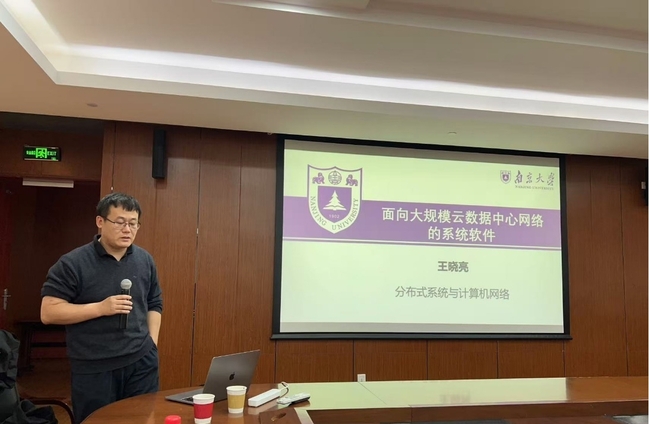 王晓亮副教授在会议上详细介绍了“面向大规模云数据中心网络的系统软件”相关知识。他首先强调了大规模云数据中心在现代信息技术架构中的重要性及其面临的挑战。接着,王晓亮副教授阐述了云数据中心的基本概念与架构,介绍了如何通过网络功能虚拟化(NFV)和软件定义网络(SDN)等关键技术来实现高效、灵活的网络管理和服务交付。最后,他总结了当前研究中的不足之处,并展望了未来可能的研究热点和发展方向。