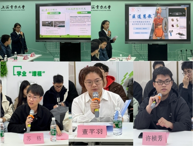 座谈会伊始,来自计算机、人工智能等专业的五位学生围绕“AI时代需要什么素养”做发言汇报,研究生代表苏格、董芊羽分别以“AI赋能时代的素养建构”、“立足人工智能前沿,争当时代有为青年”为题做分享;本科生代表、“E路领航”辅导员工作室学生负责人许桢芳以“AI时代,我们将如何应对?”为题做学习交流。围绕AI时代的创新能力,科创团队代表陆泓辰和刘欣欣分享AI技术与绿色校园、医疗领域深度融合的跨学科创新实践。在学生自由交流发言环节,与会学生围绕“AI时代需要什么素养”分享了自己的学习、研究、实践以及困惑感想。